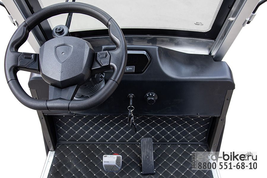 • Максимальная скорость 30 км/ч: Гольф-кар имеет оптимальную скорость для безопасной эксплуатации на закрытых территориях, предоставляя пользователю уверенность и комфорт.