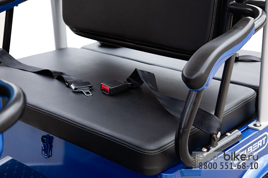 • Нагрузка 300 кг: Гольф-кар рассчитан на большую нагрузку, что позволяет перевозить нескольких пассажиров или полезный груз.