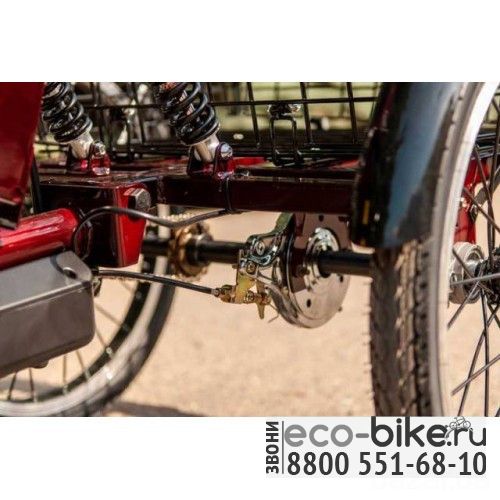 Vega Happy 500w для дачи просто превосходный вариант, можно смело сказать, что это настоящий грузовой элеткротрицикл, ведь он оборудован двумя корзинами для перевозки грузов: одна на руле, а вторая большая сзади (ее можно даже закрывать на замок). Мощное мотор-колесо 500 Вт стоит на переднем колесе, причем редуктора и шестеренок нет, лишь магнитная обмотка, что обеспечивает большую надежность. Ездить можно тремя способами: только с помощью электротяги и ручки газа, на педалях или в 3-уровневом режиме PAS, то есть когда двигатель помогает при вращении педалей. Размеры колес разные: переднее большего диаметра (24 дюйма), задние меньше (20 дюймов).